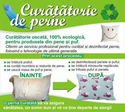 Oferim un serviciu profesional pentru curatat si dezinfectat perne ,folosind o tehnologie de ultima generatie.Schimbam si tocurile de perne.